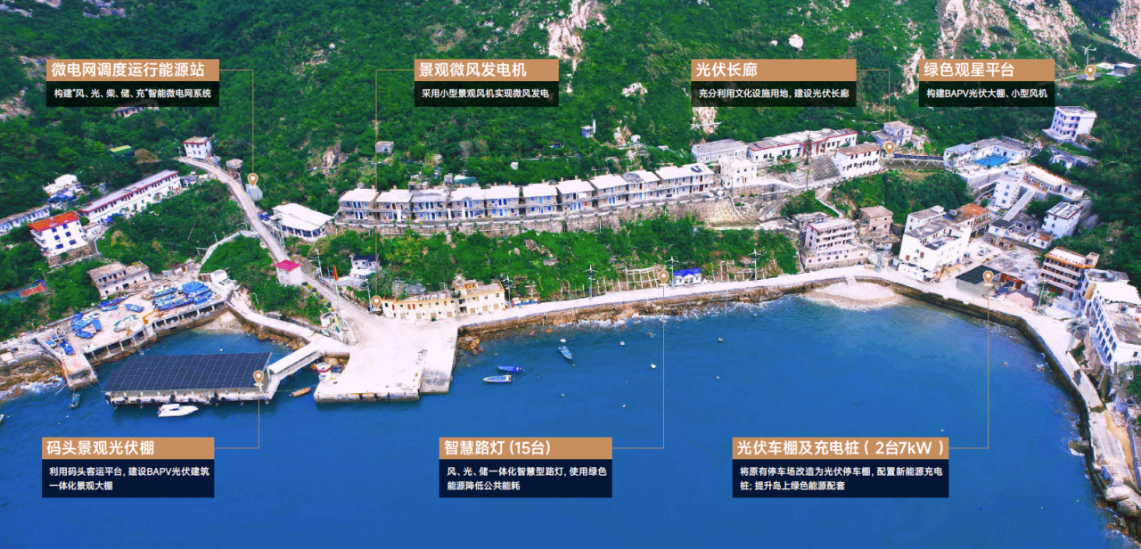 新型储能:建设430kWh(430度电)电化学储能一体舱,一次可储存岛上全天用电量的80%,并以此构建环保型“源网荷储”微电网调度运行站。